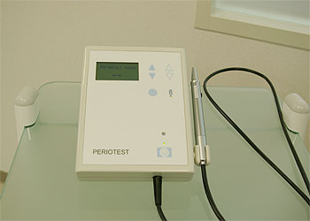 インプラントのオッセイオインテグレーション(インプラントと骨が持続した結合状態にある)の測定、歯周病治療における不正咬合の影響検査などに使用します。