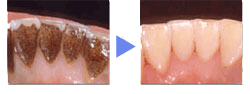 タバコのヤニや、コーヒー、紅茶、ワインなどによる汚れに効果的です。 痛みはまったく無く、優しく治療できます。