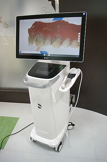 ハンディータイプの光学カメラ『プライムスキャン』により口腔内をスキャニングします。
