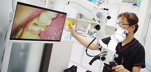 肉眼やルーペを使用しても見えない小さなむし歯や、複雑な歯の根の中を見ることができます。