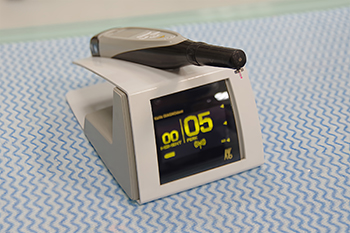 虫歯の深さをレーザーで測定する機器です。虫歯は、表面から見ると小さな穴でも、中では深く広がっていることがあります。
