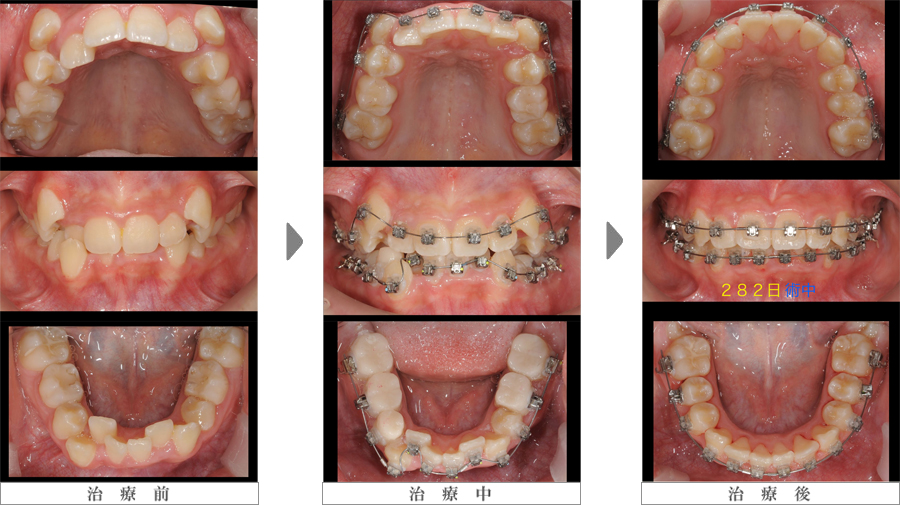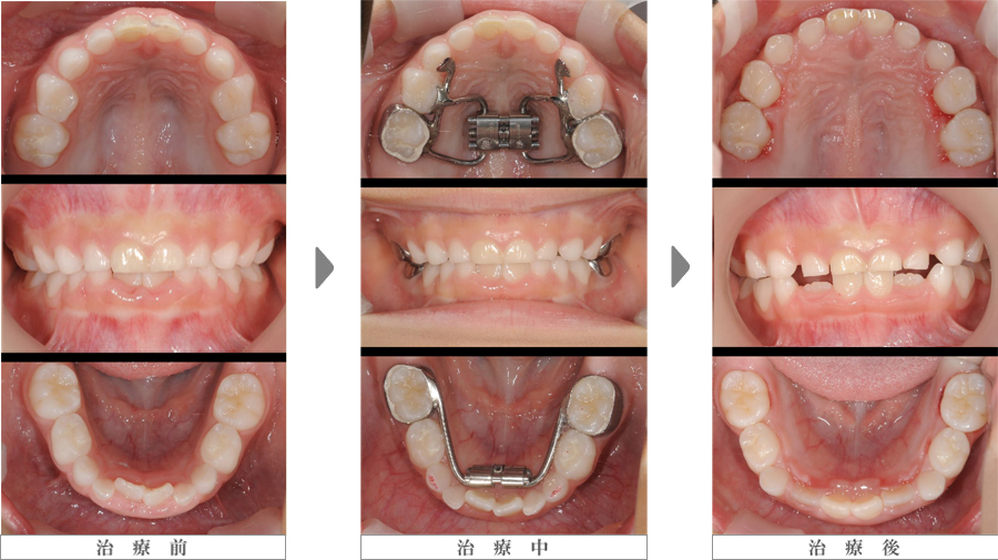 写真右列:保定期間を入れ7ヶ月後の拡大終了時